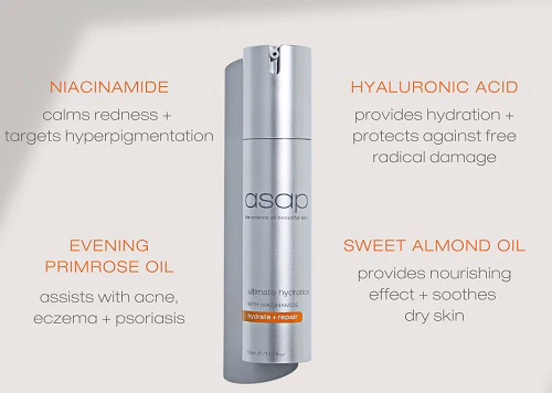 Experience the silky-smooth texture of ASAP Ultimate Hydration as it glides effortlessly onto your skin. This fast-absorbing formula ensures that you enjoy the benefits of deep hydration without any greasy residue – just pure, blissful moisturization.